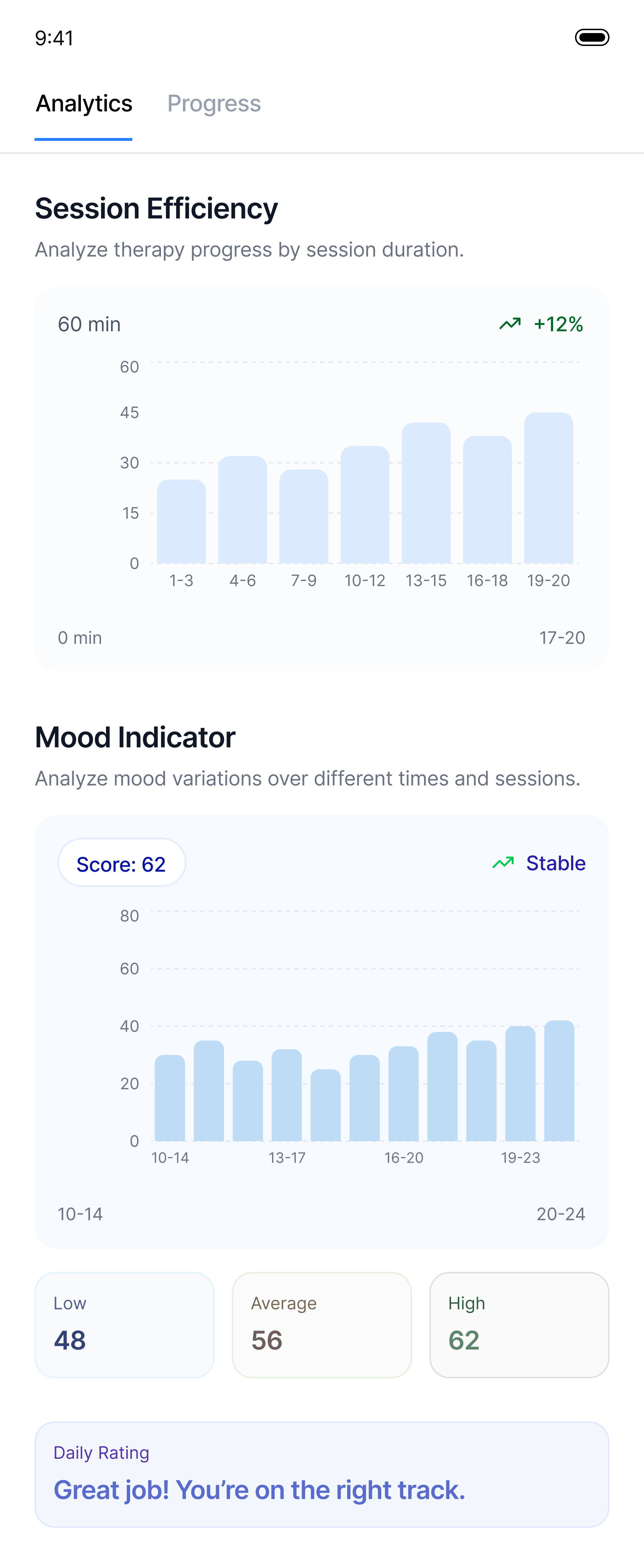 The Patient’s side should include simplified, clear, and efficient design that allows them to use it in the transient moment during therapy session.