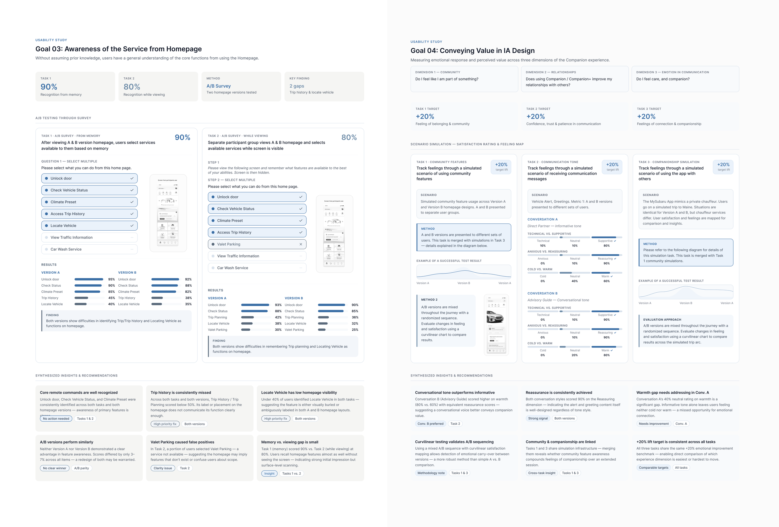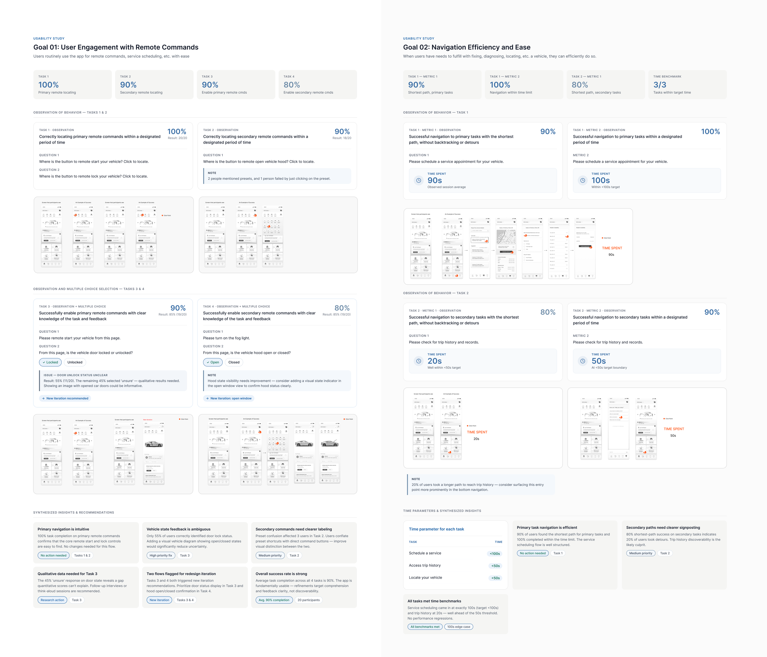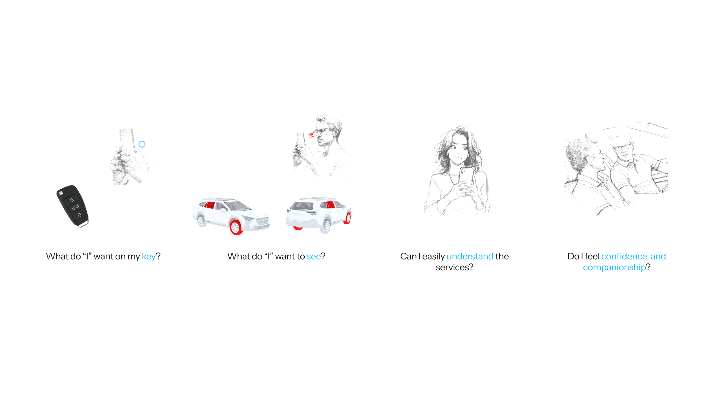 Starting at adressing key user feedback on Log-In enhancements and Data Refresh, we discovered key painpoints on navigation and information architecture. In order to solve the problem drastically, we initiated the experience redesign project, expanded the scope, and conducted user research and testings on IA. The result points us to 4 key issues: usage of remote commands, knowing vehicle conditions, understanding of the service, and feelings of companionship.