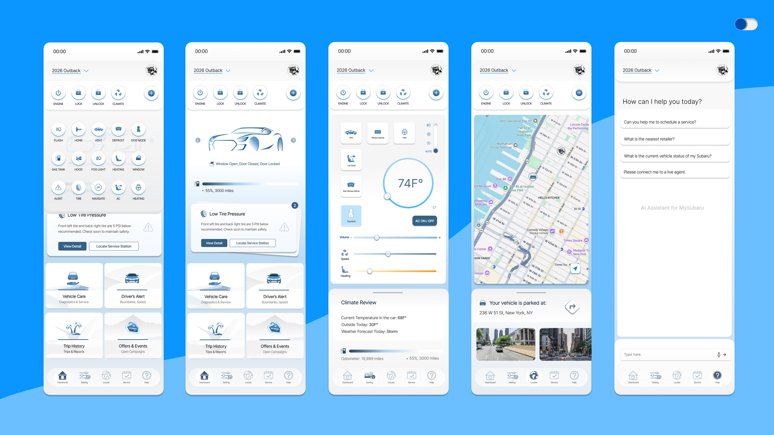 Embeddd as a Senior Product Designer at Subaru of America, I have mainly accomplished two tasks - User onboarding and retention through experience redesign. This case is a continuation of the MySubaru onboarding, tackling the issues of user retention and engagement. The scope of this project is the entire MySubaru App Experience redesign, starting from homepage and its information architecture. This case also documents visual elements that I originated and contributed to the design system and components library.