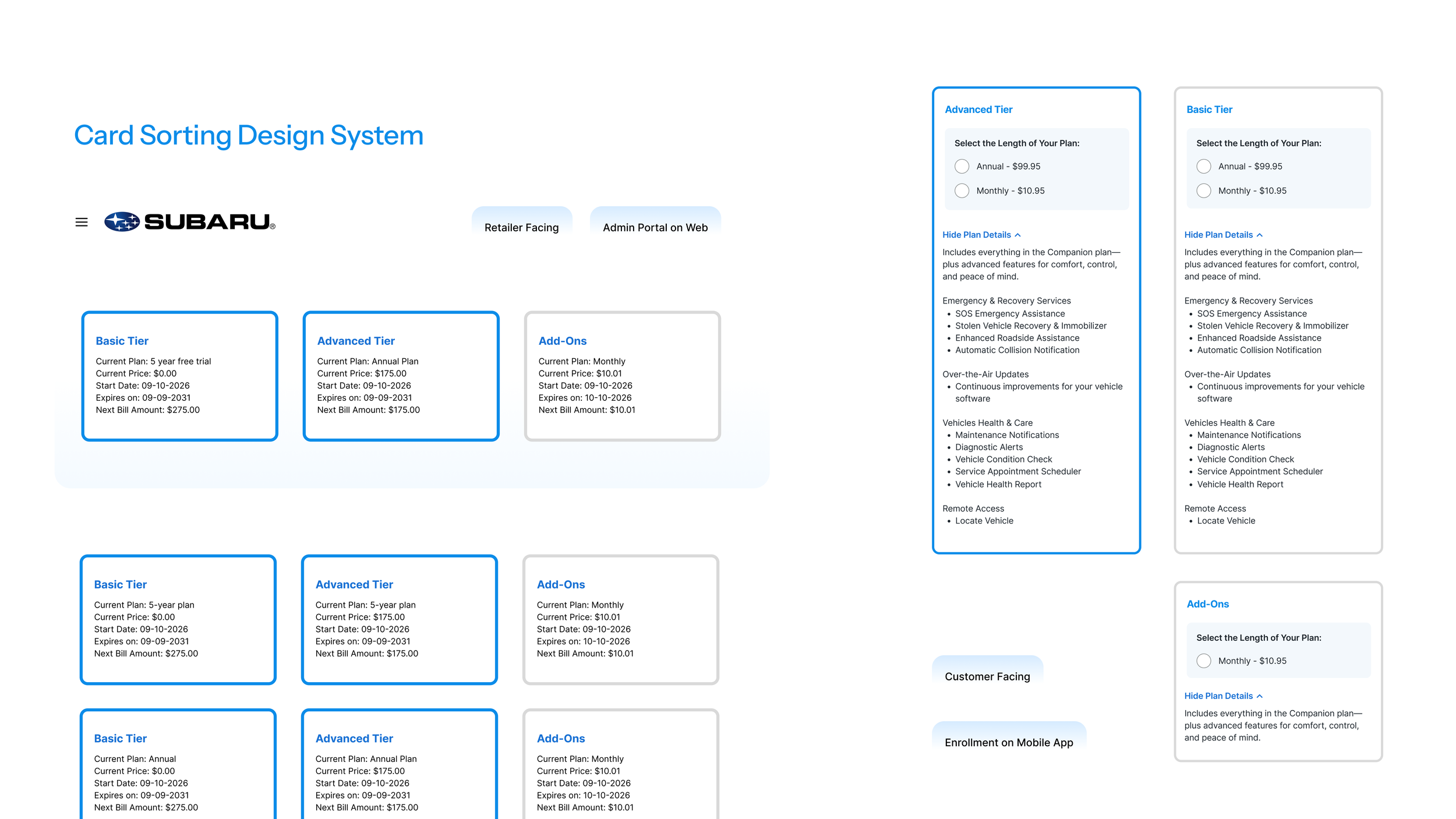 In order to tackle this tier confusion. I listed all the possible combination a user can subscribe to, and organized them on cards. This card sorting system is then transferred to mobile devices, to resolve the service clarity issue.